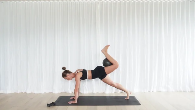 A full body Pilates burn designed to challenge your strength and endurance. This low impact workout uses a Pilates ball and light dumbbells to target the entire body through a mix of isolated muscle work and full body combinations.